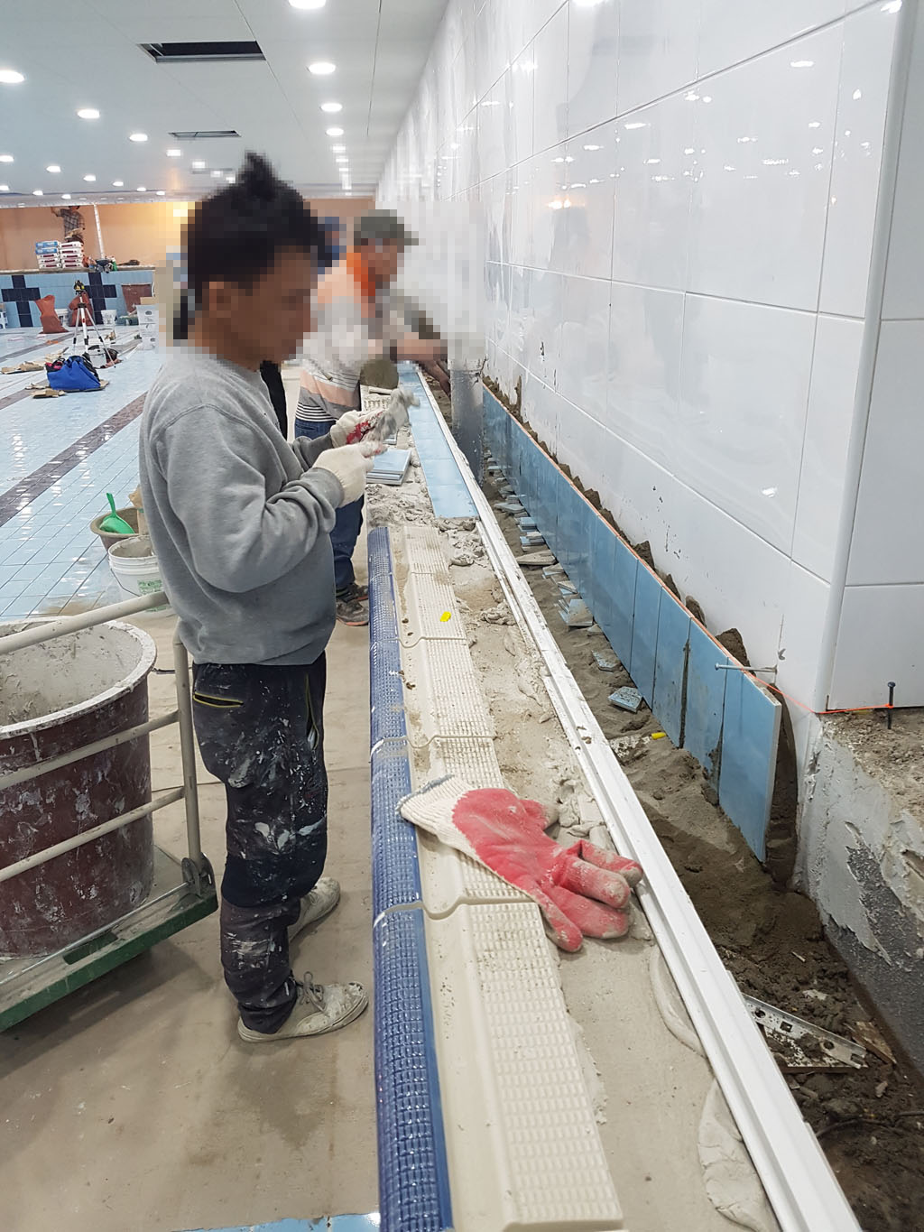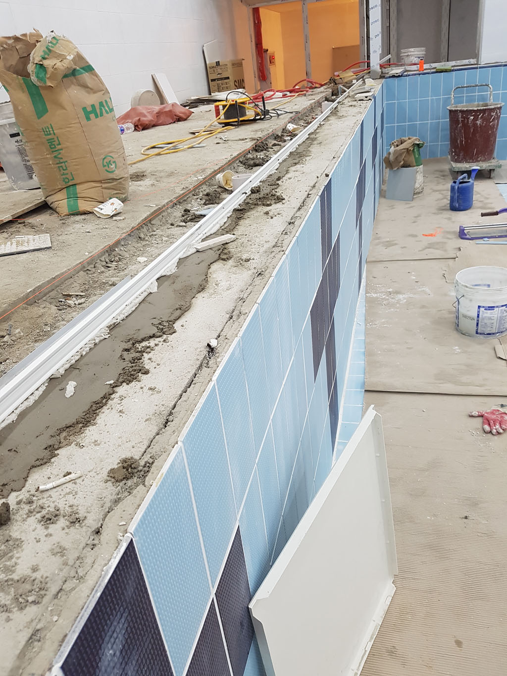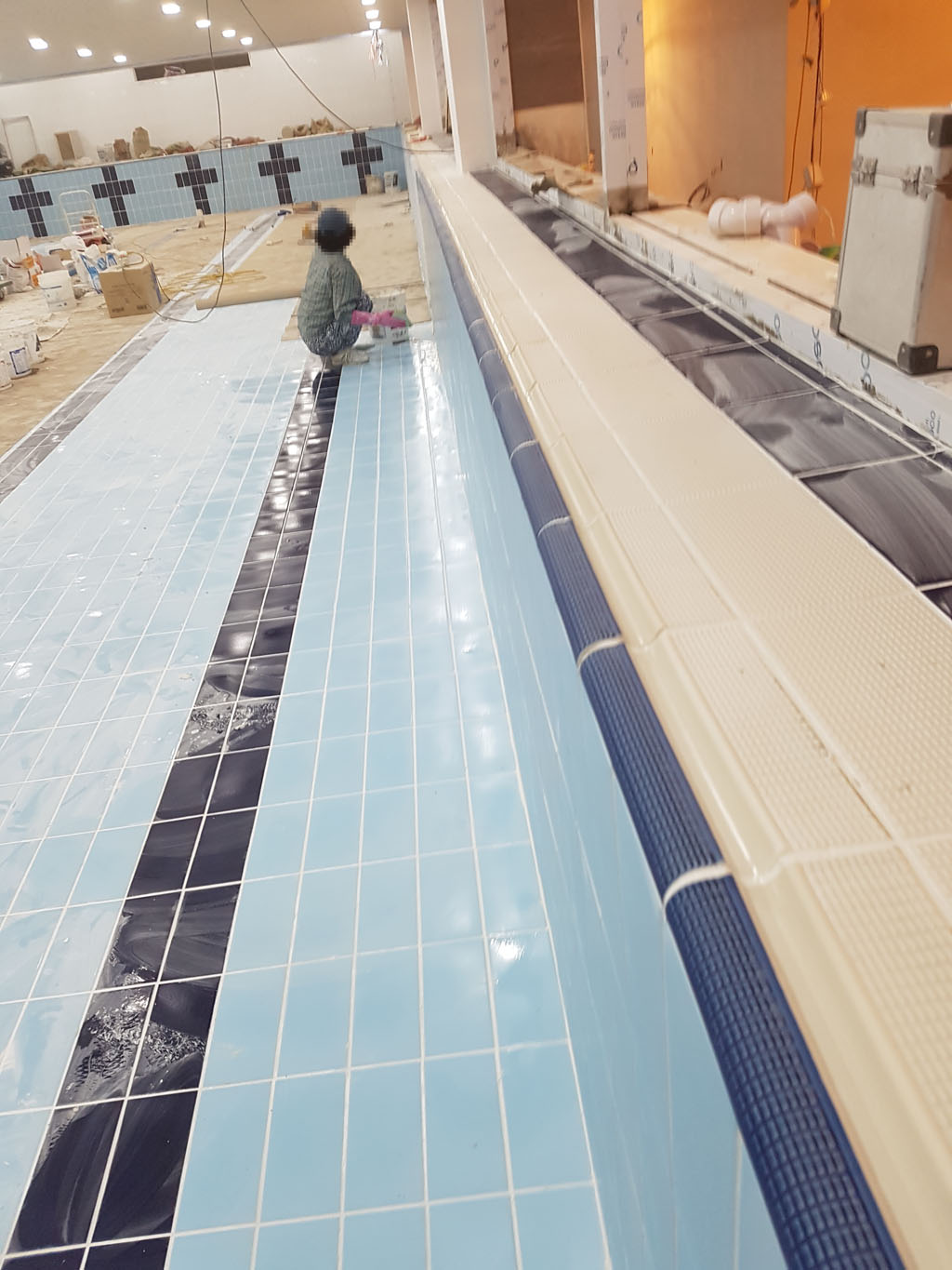 신설 스포츠센터 수영장 타일조적 공사였습니다.
