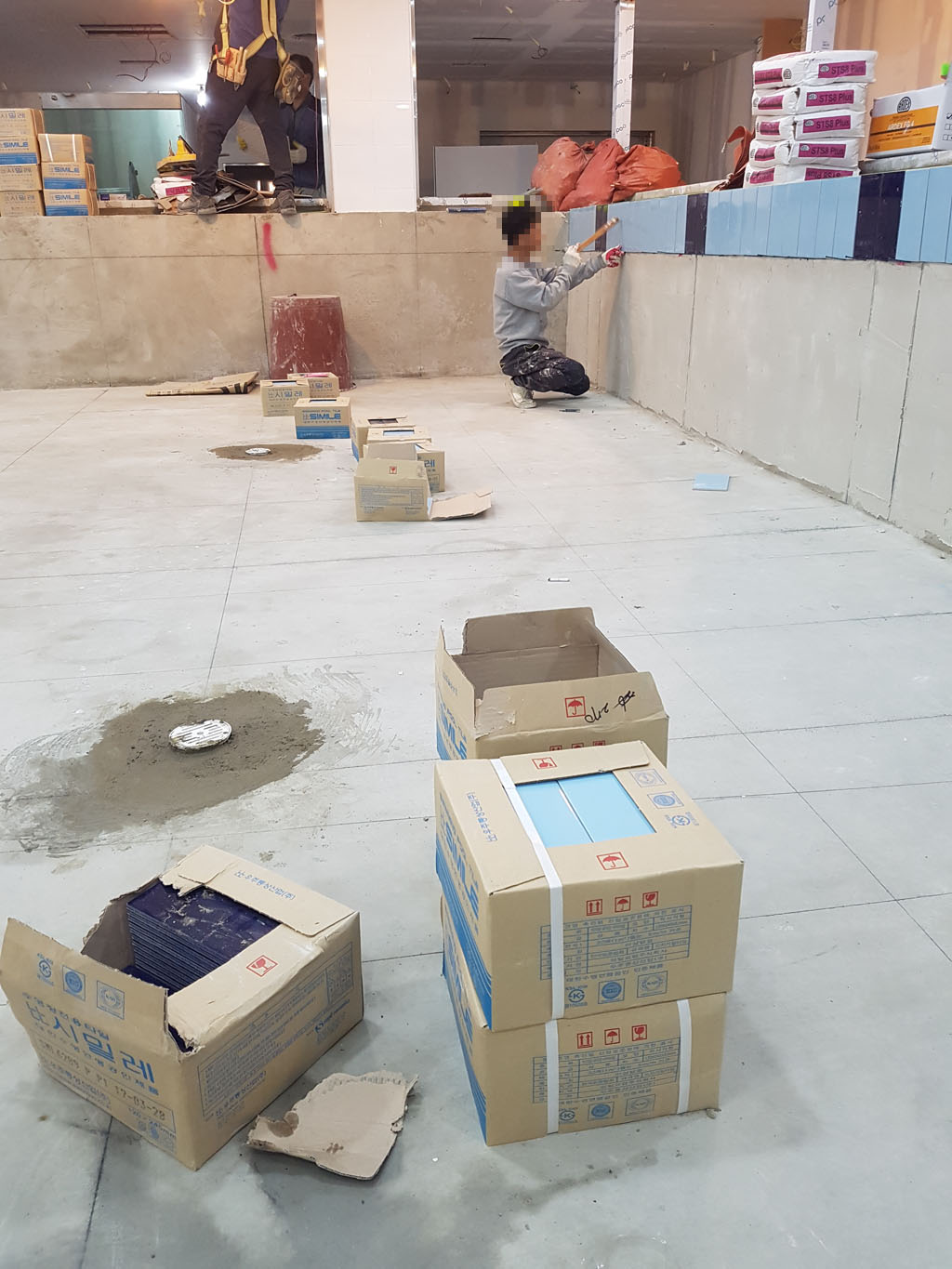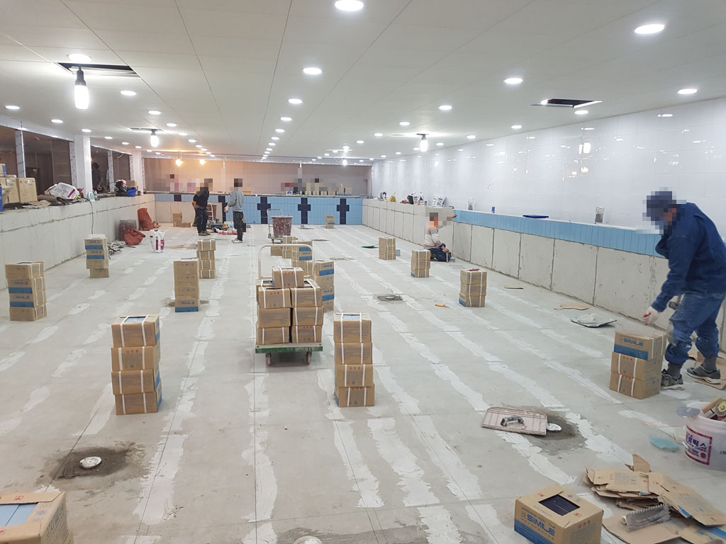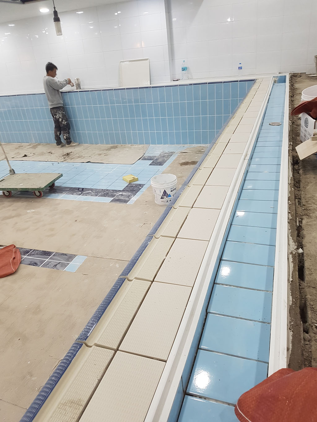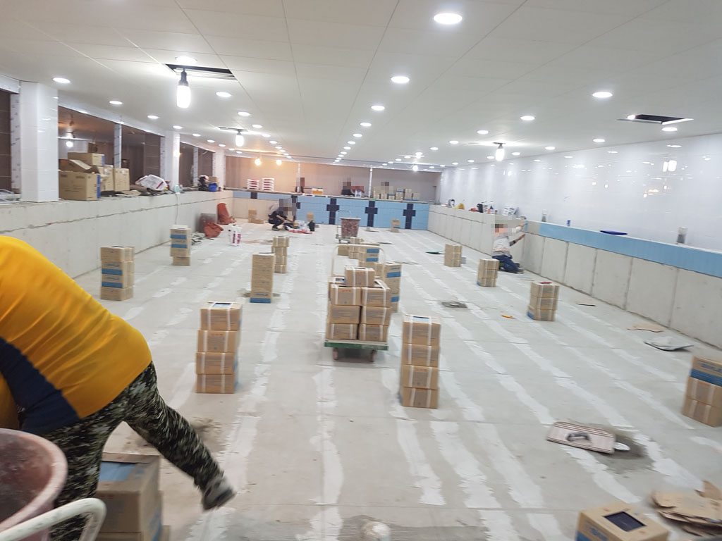 신설 스포츠센터 수영장 타일조적 공사였습니다.