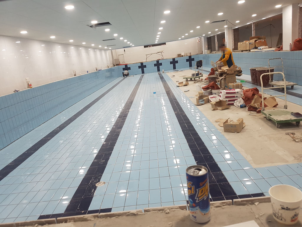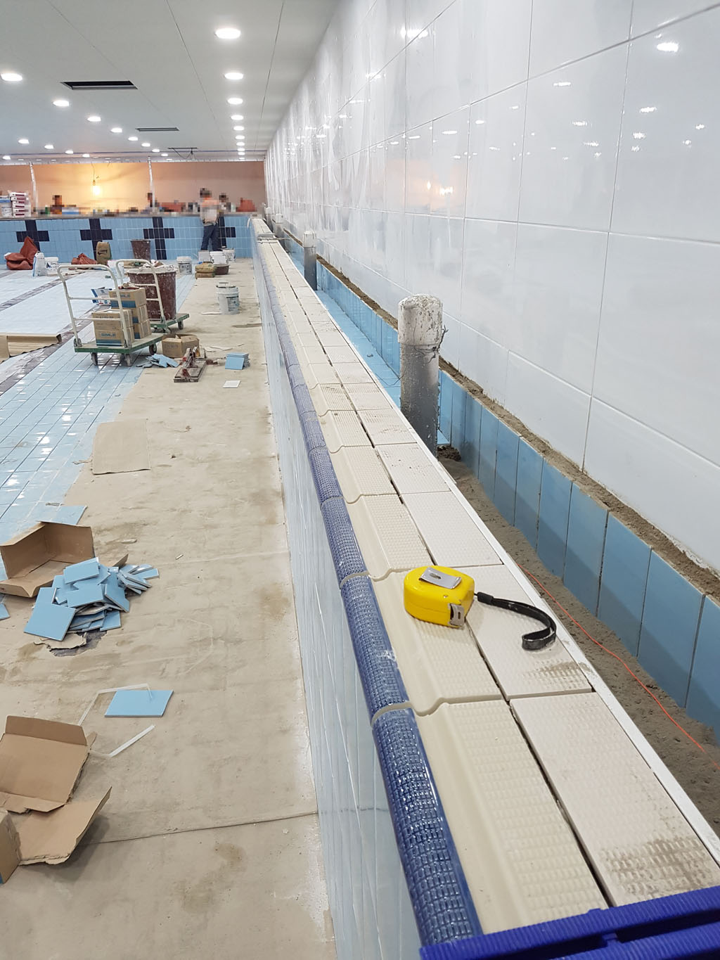 신설 스포츠센터 수영장 타일조적 공사였습니다.