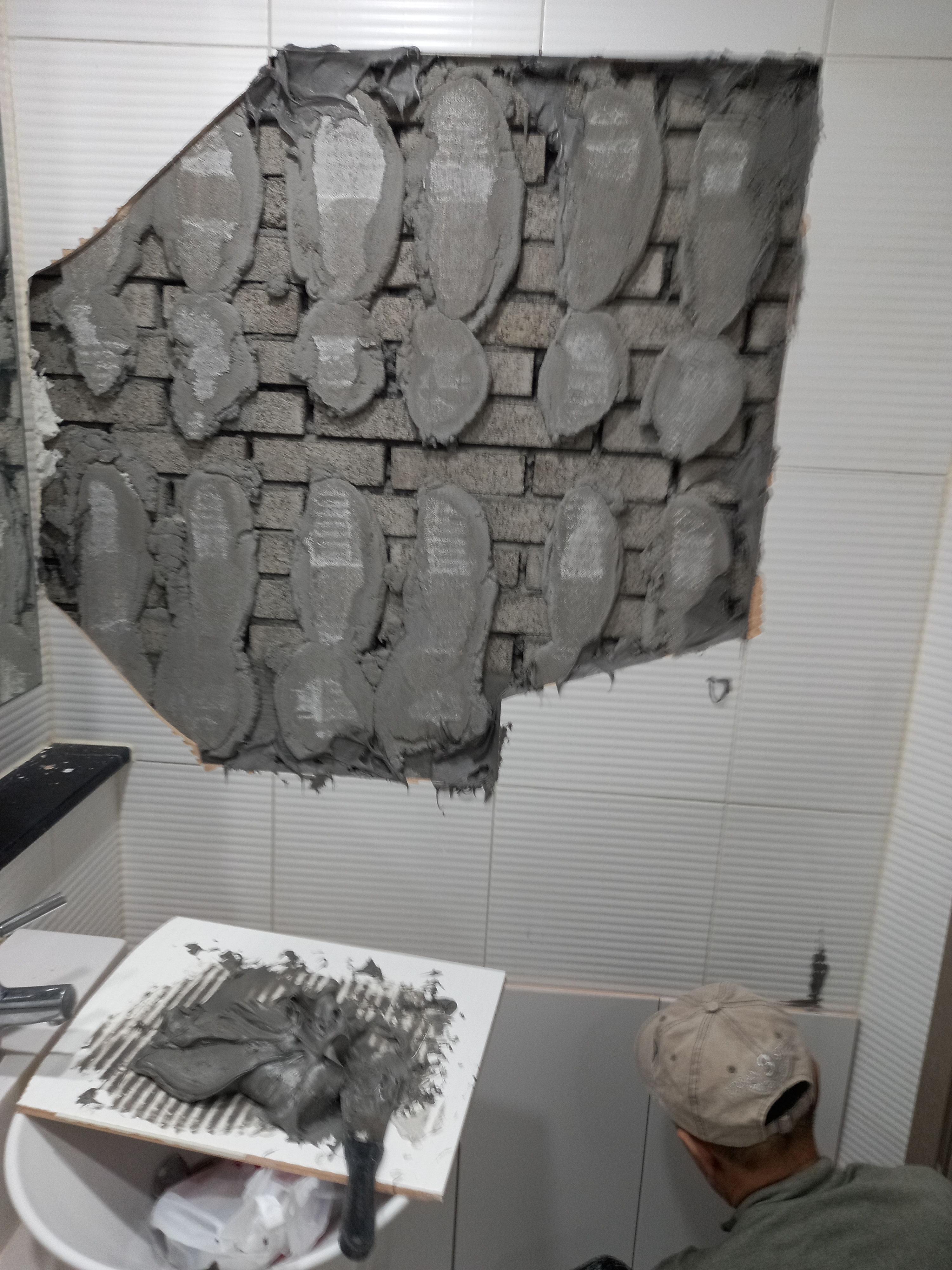 깨진 타일들을 떼어내고 덧방 시공을 하였습니다.