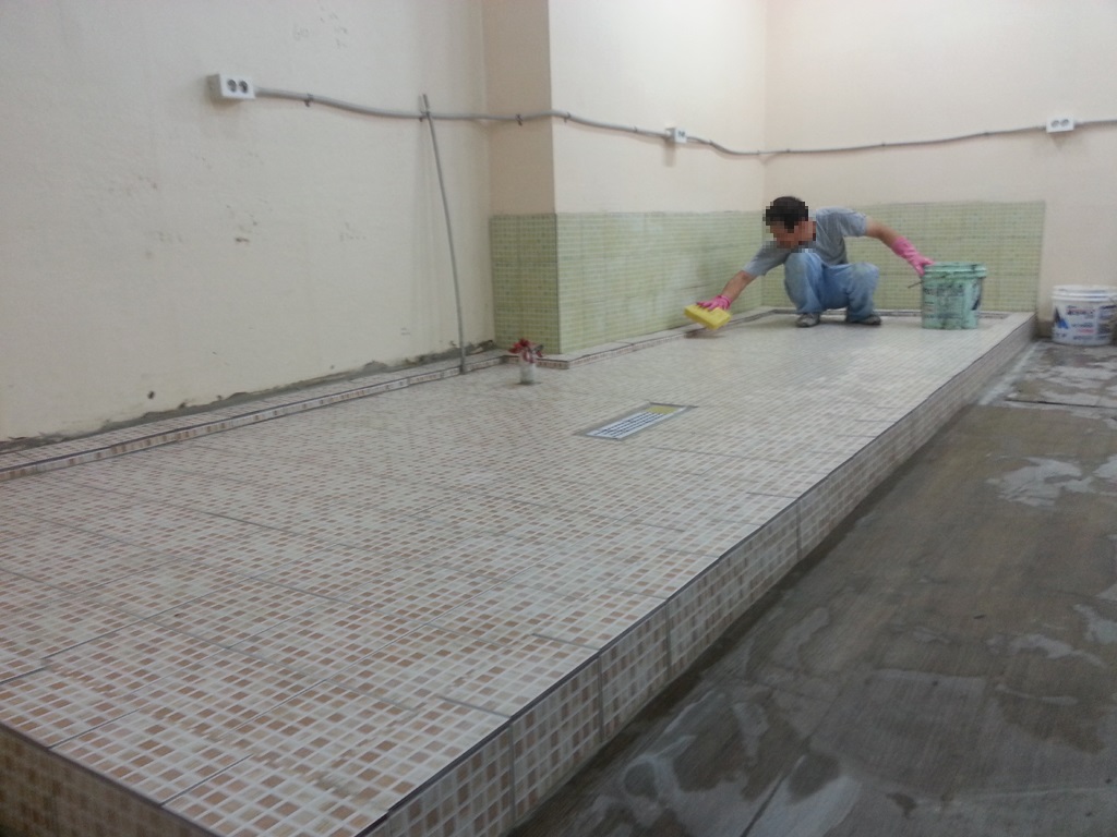 화장실 타일시공 화장실 보수공사였습니다. 바닥, 벽체에 새 타일을 시공하였습니다. 칸막이, 세면대, 양변기, 소변기, 수전, 액세서리 설치를 병행하였습니다. 화장실 2023.08.03
