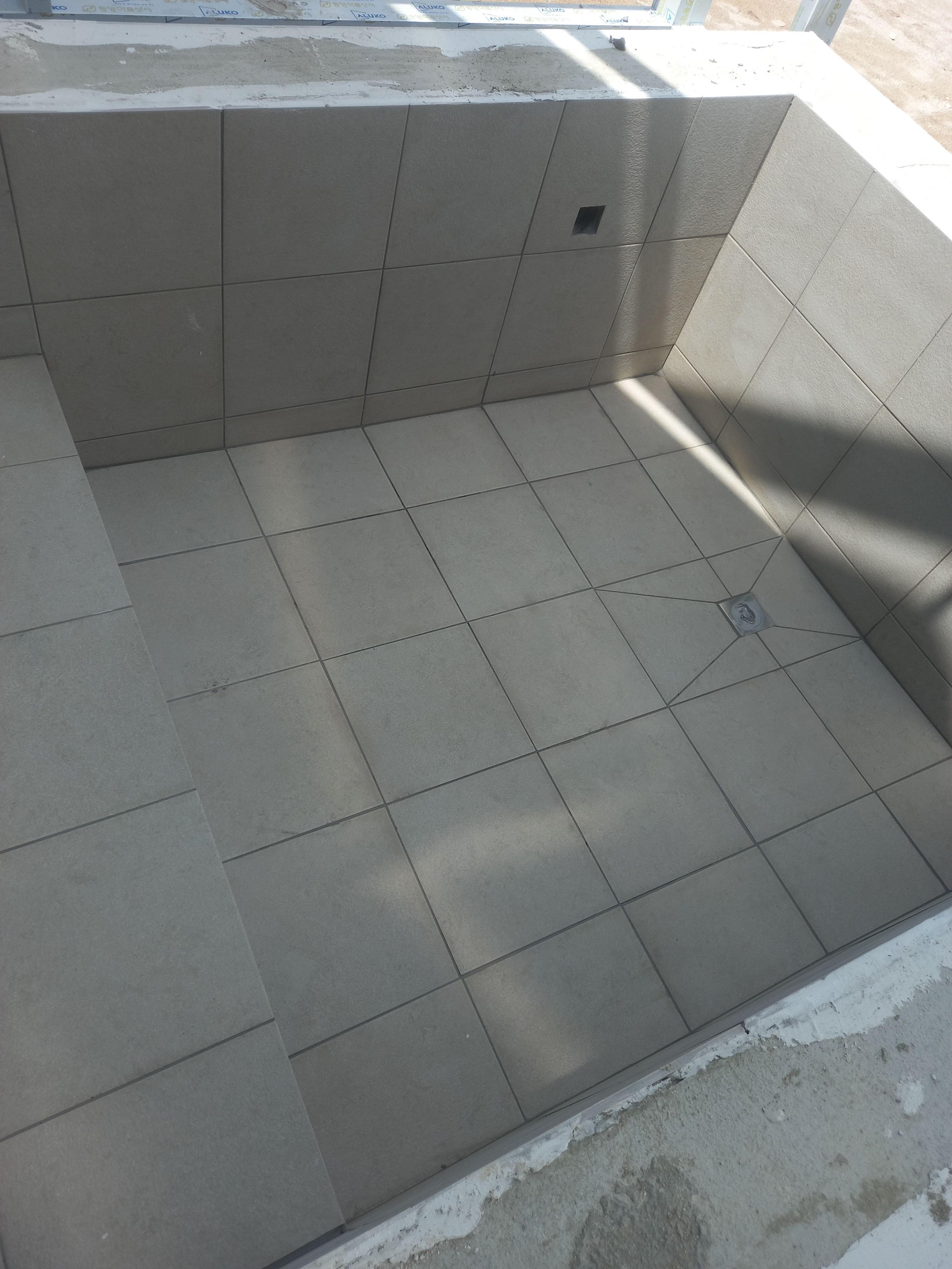 타일공사는 대충할래야 할 수가 없어요. 바로 티가 나니까요. 부실시공도 못해요. 얼마 못가서 드러나서요. 나중에 그런 일들이 생겨서 하자보수하면 오히려 손해에요. 기분나쁜 말을 들어야 하구요. 처음부터 꼼꼼히 시공하는 게 무척 중요해요. 수영장이나 사우나의 수조에 물이라도 세면 나락가는 거예요.